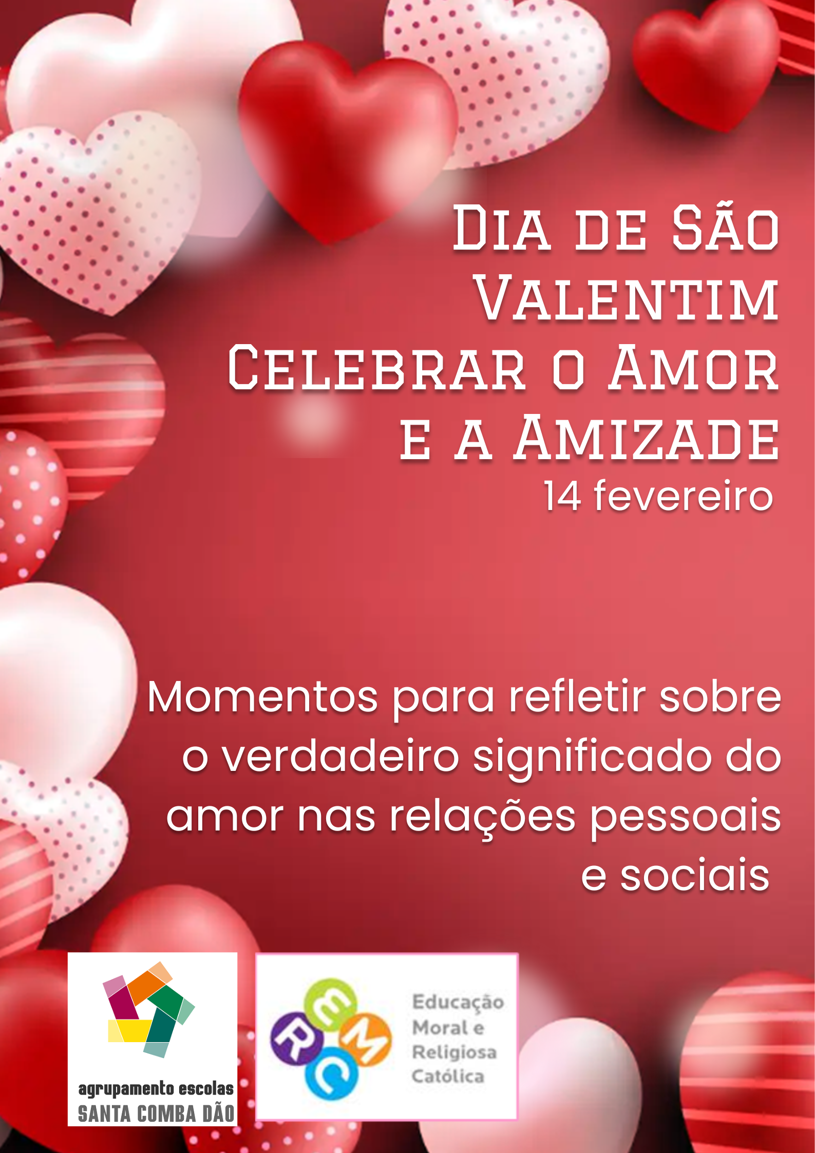 A professora de EMRC, em colaboração com os alunos do 2.º e 3.º Ciclos, dinamiza a atividade do Dia de São Valentim, um momento para refletir sobre o verdadeiro significado do amor nas relações pessoais e sociais.